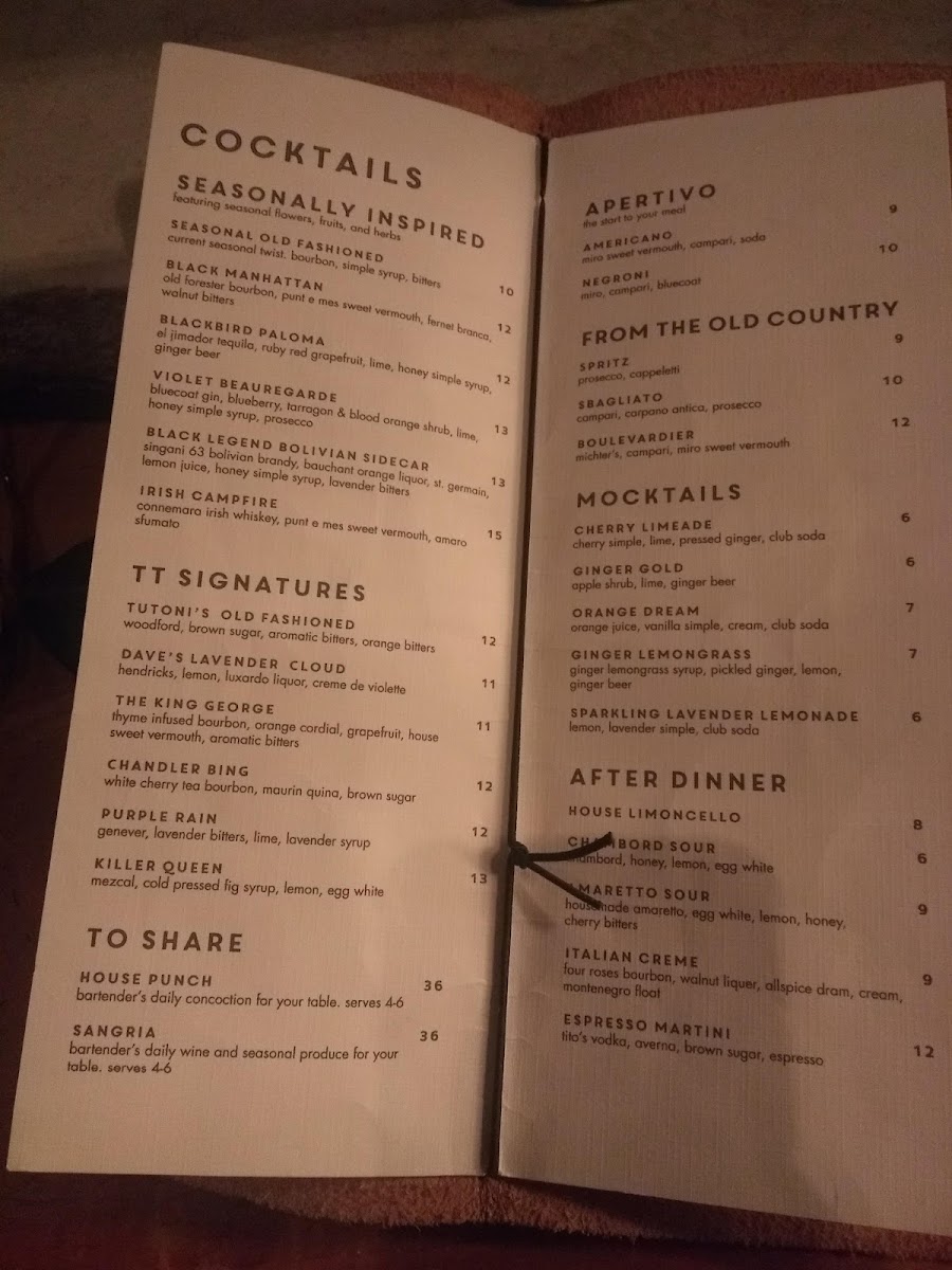 Tutoni's Restaurant Menu (Update 2025)
